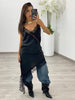 Top/abito taglia unica non elasticizzato in raso e pizzo. Bretella non regolabile. Veste fino alla 42/44