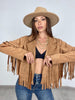 Giacca sfoderata effetto renna con frange taglia unica. Non presenta chiusura, si indossa aperta, arriva al punto vita.