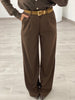 Pantalone vita alta non elasticizzato, chiusura con zip e bottone, tasche laterali, pences.