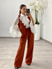 Tailleur coordinato gilet e pantalone taglia unica, tessuto non elasticizzato. Il pantalone presenta chiusura con zip e bottone ed elastico sul retro. Veste dalla 40 alla 44, misure ragazza in foto (38 , altezza 1,60 con tacco 10)