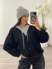 Cardigan unito con la felpa (i due capi sono cuciti quindi non separabili), taglia unica, felpato internamento. Misure ragazza in foto 1,60
