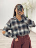 Camicia flanella taglia unica, con manicotti che si attaccano alla manica tramite bottoni, lunga, asimmetrica (più lunga sul retrp. Veste comoda, la ragazza in foto è XS-1,60
