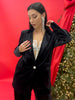 Giacca in ciniglia elasticizzata con spallina imbottita e bottone gioiello. Lunga sui fianchi. La ragazza in foto è alta 1,60 taglia XS ed indossa la taglia S